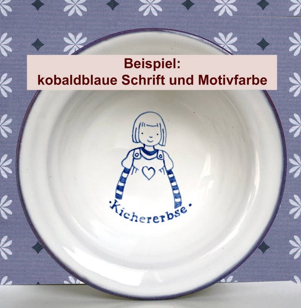 Beschriftungsfarbe/Motivfarbe: Wähle zwischen den Farben Petrol und Kobaltblau für deine Beschriftung. Auch für die gemalten Kindermotive kannst du zwischen den beiden Farben wählen. Du kannst beide Farben als Beispiel in den Bildern sehen.